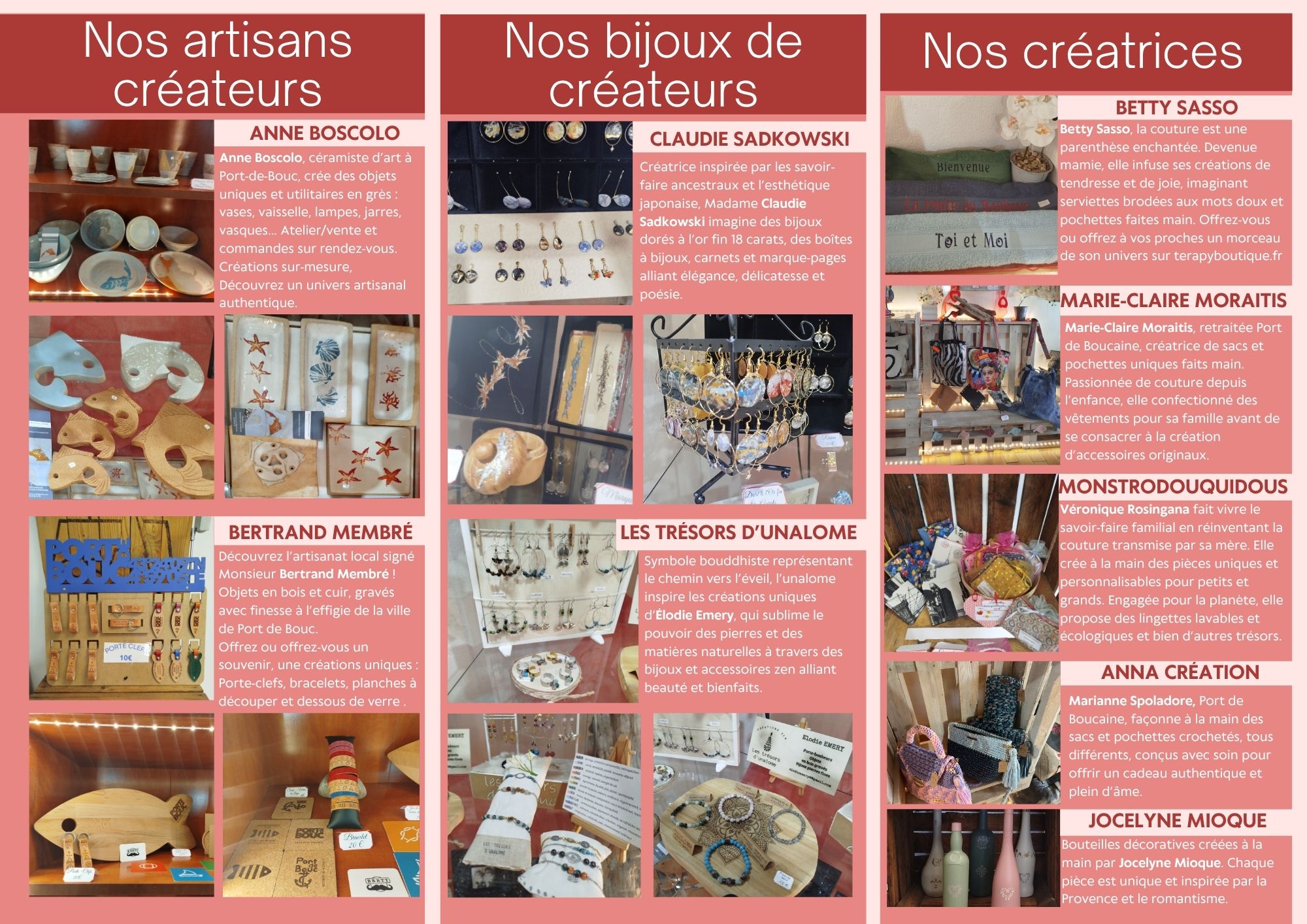🧾 Venez dĂ©couvrir des crĂ©ations artisanales rĂ©alisĂ©es par des crĂ©ateurs port-de-boucains :