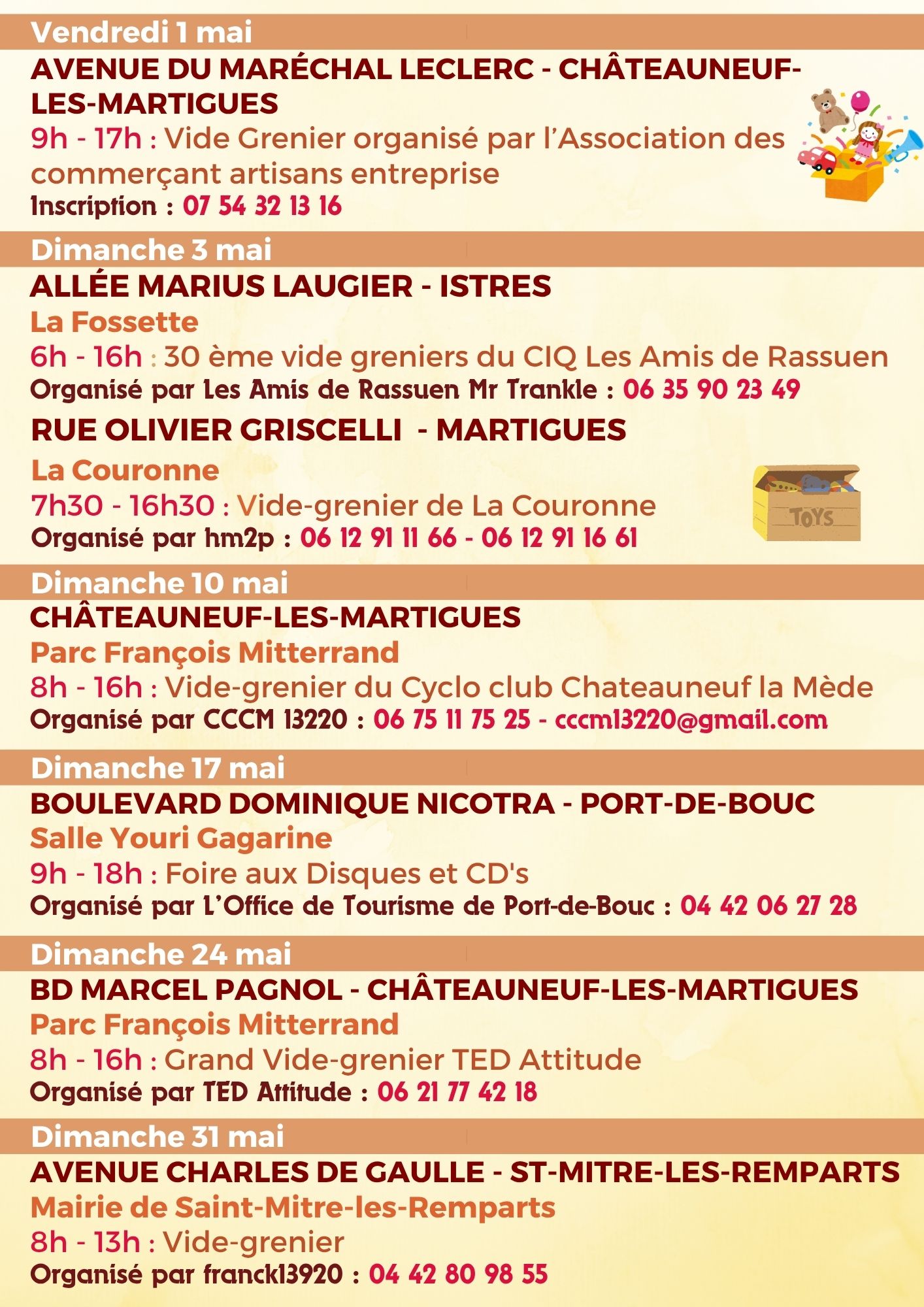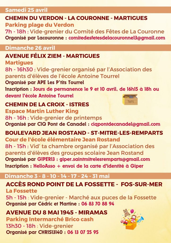 Découvrez les vide-greniers organisés autour de Port-de-Bouc et dans les communes voisines !